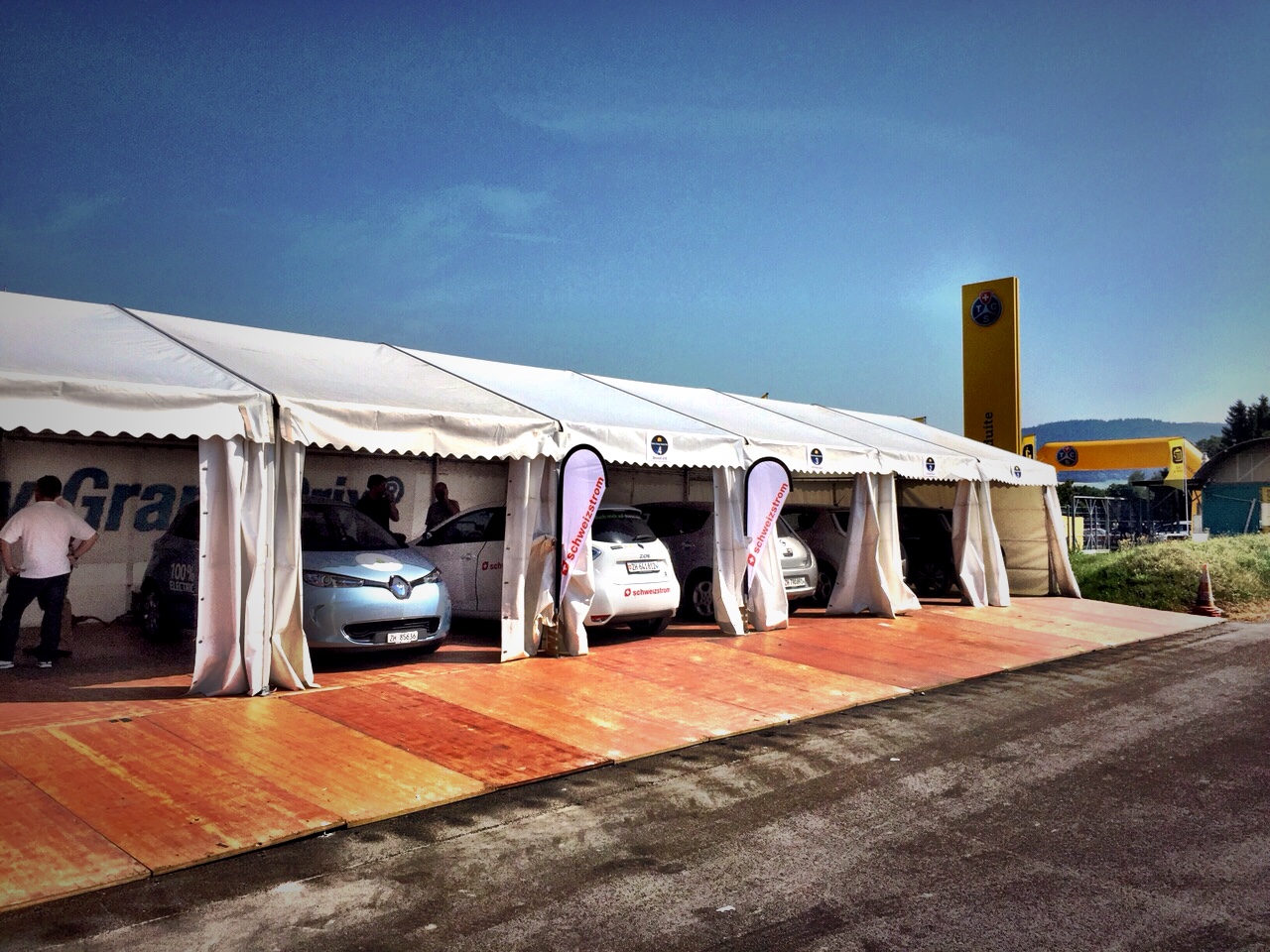 To complete the field, a fourth Zoé would be competing with us, driven by a team of Tesla Club members and the club president, Stephan Schwarz. You might remember that Stephan too is one of our sponsors, he supported us by providing us with a car through his company. ABSS is a team of architects located in Volketswil near Zurich offering expert knowledge and extensive experience. Please check out their website for more information!